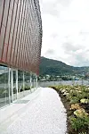 Nordvik sier at bygget har geometrisk form som en kvart sirkel, med radius på cirka 92 meter til byggets bakre akse. Bygget er 18, 2 meter bredt, og bakveggen heller 1,5 meter utover. Bærende konstruksjoner er i plasstøpt betong og stål. Tak, bakvegg og mange detaljer er kledd med kopper. Langs fronten av bygget er det brukt sibirsk lerk i en terrasse som går i hele byggets lengde. Denne siden har også en stor glassfasade. Det er i stor grad benyttet selvrensende glassruter i hele bygget for å lette vask og vedlikehold.