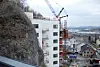 - Jobben var atskillig mer omfattende enn vi kunne se for oss, både med sikringsarbeidene og alunskiferen. Nå haster det med å få dekket alunskiferen med betong før frosten kommer, sier prosjektleder Per Kristian Andresen i Skanska Norge. Denne tomta er av det virkelige trange slaget, der lagerplasser stadig må flyttes på. En garasjekjeller under og mellom blokkene bidrar også til nøye planlegging når det gjelder logistikk. Skanska Norge har hatt omlag 20 mann i arbeid og har stått for alt tømmerarbeid og plasstøpt betong på plassen.