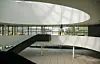 Spilekledningen i himlingen inne fortsetter i overtaket utenfor og skaper en artig effekt gjennom vinduene. Den runde sirkelen som utgjør messaninen i andre etasje har to trapper i halvspiral utforming. Samme type trapper finner vi igjen ute i «gata». Etter skoletid vil det være mulig å stenge adgangen fra biblioteket og inn til resten av skolen, da er det en egen inngang som gjelder. Alt håndverk er eksellent utført, spesielt imponerte overgangene mellom skiferfliser og parkett på gulvet.