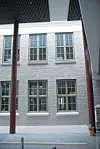 Fra Rådhusplassen får man best inntrykk av sammenkoblingen ny/gammel skole og folkebibliotek. Den kobberdekte overlyskuppelen i folkebiblioteket står som en kontrast til gamleskolens spir. Et eksempel på at en forskjell på nesten 100 års arkitektur kombinert med moderne byggeteknikk kan fungere svært bra.