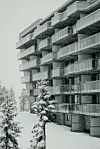 Mellom snøtunge graner i Kvitfjell står leilighetskomplekset Krystallen fjellstøtt på egne ben, selv om vinden over kulen kunne være barsk nok. Fram til ferdig regulering hadde Larkas AS utarbeidet skisseprosjektet for Krystallen.