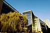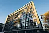 De nye fasadene består av store glassflater med kobberrammer rundt. Det er en blanding av såkalt «structural glazing» med glassfinner som bærende konstruksjon og vanlig profilsystem. Flere steder glir kobber inn i fasaden i det gamle bygget slik at helheten mellom det gamle og nye blir klarere. At man i tillegg finner igjen de samme betongtypene inne og ute, forsterker helhetsinntrykket.