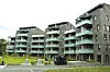 Leilighetsbyggene i Skøyenhagen ligger fredelig til avgrenset av trær, Hoffsbekken og andre bygg.