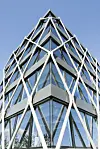 Men utfordringene sluttet ikke der. Siden det utenpåliggende stålet gjorde det vanskelig med tradisjonelt stillas, måtte det tenkes nytt ved montering klimavegg og fasadeglass. Brystningselementer ble prefabrikkert på dekkene, vippet på plass og montert fra innsiden. For glass- og aluminiumsfasaden ble det utviklet et nytt system sammen med underentreprenør Flex Fasader og profilleverandør Schüco.