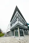 Hovedfløyen har fem etasjer og midtfløyen to. Midtfløyen har de mer underordnede publikumsrettede funksjonene og et innbydende inngangsparti med et takutstikk båret på slanke søyler. Innenfor ligger en glassoverdekket gate, som skal være prosjektets funksjonelle ryggrad. Arkitektene har lagt vekt på dempede fargetoner for å tilpasse seg de omkringliggende bygninger. Det gjelder også i forhold til arkitekturen i Skedsmos prangende rådhus som er nærmeste nabo.