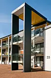 Byggene er rektangulære og har bærende konstruksjon i plasstøpt betong. Takene har en helling på fem grader og er bygget opp av 50 cm isolasjon, bærende I-bjelker, duk, 7,5 cm lufting og treplater. Fasadene har hvit, liggende trekledning og karnapper innkledd med fargerike aluminiumsplater. Heistårnene har kledning i sinusplater i ulike farger. Det er også felt med farget glass i fasadene.