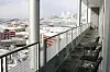 Den indre glassveggen på 7 x 12 m består av tre lag glass i ulik avstand og type inn til salen. Den ytre glassveggen dekker hele fasaden og er ytterveggen i svalgangen. Til sammen gir den ytre store glassveggen som dekker hele fasaden og det indre vinduet en lydreduksjon på 85 dB.
