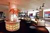 Fra den storslåtte loungen i åttende etasje, med egen takterrasse, ser man ned langs fasaden i atriet med hotellrommenes terrasser. Her er Drømmen om Amerika levendegjort midt i Norges hovedstad. Det er nesten så vi forventer å se Woody Allen frenetisk gestikulerende på terrassen under oss.