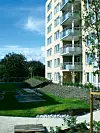 – Byggherren har vektlagt kvaliteter over gjennomsnittet både i boligene og utomhusanlegg, som her er 40 prosent. Minstekrav til uteareal var 20 prosent av det to-tale leilighetsareal (BRAs). Uteareal er her beregnet til areal på bakkeplan, private terrasser, balkonger og hager. Det er lagt ned mye arbeid i utomhusarealene, både i planløsning og økonomi.