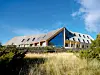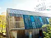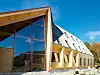 Bygget er svakt vinkelformet og bæres av massivtreskiver med en akseavstand på 2,7 meter. De flateste takene har sutak av metallplater for å sikre mot fukt. Fasadene av kjerneved er behandlet med jernvitrol for å få en jevn patina.