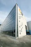 Ellers er bygget ganske likt et hvilket som helst industribygg, med blant annet hulldekker, betongelementer, stålsøyler, gitterdragere og lettak. Fasadeplatene fra Paroc har også vært en suksess. Nabobyggene til den nye