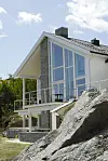 Leilighetsbygget i sør har tre plan med 15 leiligheter tilpasset det eksisterende hotellet og et tilstøtende forbindelsesbygg som knytter dette sammen. Det er tilgang fra hotellets lobby, med trappesjakt eller heis direkte opp. Også her var store sprengingsarbeider påkrevd, og høyden ble redusert fra kote 15 til kote 7 og 10. Råbygget i stål og betong har tradisjonelt bindingsverk. – OKK har gjort alle bygningstekniske arbeider, tømmer og betong, i egen regi. Det er helt klart riktig å si at vi er gode på denne typen konstruksjoner, men småhusene har vi satt bort til andre som kan dette bedre. Underentreprenør Ronald Klevstad har løst dette på en god måte for oss, sier Brekke.