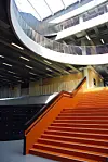 Arkitektene har hatt som mål å samle skolens forskjellige elementer i en kompakt og vertikalt orientert bygning. Skolens etasjedekk forskyves som en rotasjon rundt husets sentralakse. Et atrium bringer tankene til et torg, og fører dagslys langt inn i bygget.