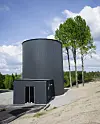 De opprinnelige planene med å bygge et basseng under bygget ble forkastet. På utsiden av bygget, i det ene hjørnet, støpte Veidekke en bunnplate som utgjør bunnen av en vanntank. Veggene på tanken utgjøres av falsede platebånd som settes sammen med fugemasse mellom skjøtene. Til sammen går det med nesten 30 runder med bånd før tanken står ferdig, der hver runde er 380 mm etter falsing og skjøting. Taket legges på tidlig og følger med oppover i prosessen.