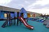 2. etasje består i hovedsak av undervisnings- og basearealer for alle årstrinn, mens 1. etasje inneholder garderober, administrasjon, kantine og spesialrom. Flerbrukshallen ligger som et addert volum på østsiden av bygget med spilleflaten på kjellernivå, mens barnehagen bevisst er trukket noe bort fra hovedbygget som et selvstendig bygg, men allikevel tilknyttet selve grendesenteret via et mindre «forbindelsesvolum» som inneholder åpen barnehage og familiesenter.