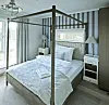 Utbyggingen består av et rektangulært bygg med hotellrom og velværeavdeling, et rundt bygg med kurs- og konferanseavdeling og et glassbygg som skiller den historiske delen og den nye delen. Bærende konstruksjon er stålsøyler og plattendekker. Det papptekkede taket har en vinkel på seks grader og bæres av takstoler. Fasadene er kledd med hvitmalt trepanel. Romdelen består av elementer som ble levert med malte overflater og innsatte vinduer. Alle baderommene ble levert som baderomskabiner. Det er tepper i korridorene og parkett på hotellrommene. I korridorene er det systemhimlinger, mens det er gipshimlinger i fellesarealene i underetasje.