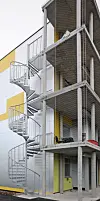 Begge byggene har buet form. Bærende konstruksjon er i plasstøpt betong. Takene er plasstøpte, isolerte og tekket med folie. Fasadene er i Alucobest, et komposittmateriale med for- og bakside av aluminium. Den ytre overflaten er selvrensende. Mot svalgangene er det malt trepanel i ulike farger. Inne i leilighetene er det malte gipsvegger og linoleumsbelegg på gulv. Himlingene er sprøytemalt. Leilighetene har fri høyde på 2,7 meter.