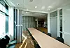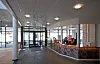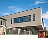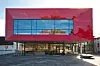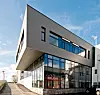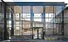 Sveios nye kommunehus har store glasfasader og et transparent inngangsparti.