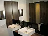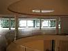 Også i lobby og i trappehuset er det valgte samme type marmorstein, mens det er valnøtt i gulvet i kantina.