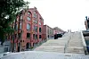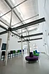 Når de gamle industribyggene skulle tas i bruk, må formen nødvendigvis også bli mer kompakt. Men glasstaket og de glassoverdekkede passasjene mellom flere av byggene åpner opp og gir et mer luftig inntrykk. Setningene i byggene var også en utfordring ved prosjektering og produksjon av glassene.