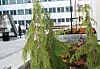 – Dette har gitt oss muligheten til å lede mesteparten av overflatevann utenom etasjene under, og også mulighet til å legge inn flere trær. Beplantningen ellers er variert, med mye lav, teppedannende vegetasjon og blomstrende og vintergrønn vegetasjon med spennende farger og former. Belegg på gangarealene er plasstøpt betong med markeringsstriper og ledelinje av smågatestein i hvitt, grått og sort. Belegg og murer er i grå granitt, mens møbleringen er sortlakkert. Sittemøbelet «Sjøstjernen» i sortlakkert glassfiber skal være en kombinert sittemøbel og skulptur, og det er også planlagt store urner med beplantning rundt glasstaket, forteller Klaveness.
