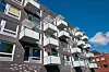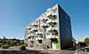 – Svalgangen ligger jo mot denne solsiden og det var viktig å gjøre denne til et viktig element med et positivt innhold. I tillegg til å la det bli et spill i fasaden, hadde vi her anledning til å utvide deler av svalgangen til en privat uteplass for de respektive leilighetene, sier Aspen.
