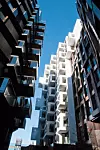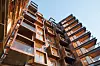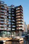 Den spesielle utsparingen i byggets front, i hele høyden på elleve etasjer, gir et makeløst arkitektonisk uttrykk. Den sydvestvendte beliggenheten gir optimale solforhold for de fleste av de 91 leilighetene. Som i Vinkelbygget er det også her felles takterrasser for rekreasjon og utsikt. Boflatene varierer fra 49 kvm opp til 186 kvm. Tjuvholmen KS er selvfølgelig svært godt fornøyd med at 75 av de 91 leilighetene er solgt, noe som burde love godt for de neste boligprosjektene som kommer.