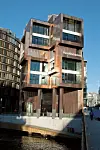 De tre byggene har hver sine uttrykk og funksjoner. Vinkelbygget er tegnet av de danske arkitektene schmidt hammer lassen architects. Boligdelen i vinkelen, hus 16, kjennetegnes ved sammenhengende rader og rekker med balkonger, terrasser og karnapper i fasadene. Tidlig i prosjektet var akkurat dette tomtestykket tiltenkt et hotell på Tjuvholmen. Dette er nå skjøvet både frem i tid og lenger ut mot sør. I planene for hus 16 har også hotelleiligheter vært inne i bildet. Totalt vil det ferdige Tjuvholmen i 2013 inneholde ca. 900 boliger. Men for alle leilighetene i det 14 etasjers høye bygget er det imidlertid utleie som nå gjelder.