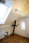 – Vi vurderte en spilevegg, men den ville vært lite spennende i tre eller metall. Vi landet på glass, der ideen er at designen skal være en parafrase på et partitur. Jeg vil også gjerne få rose byantikvar Gunnar Haugen for hans samarbeid med oss. Det har vært klare grenser mellom det som skulle passes på i bygget fra 1878 og det skulle være nytt, forklarer Rørholt.