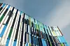 Uttrykket består av tometers høye fargede glasslameller som enten ligger på eller står loddrett på veggen. Stoffligheten er oppnådd ved å bruke hamret glass, og lyskildene ligger stedvis i fasaden der det ikke er vinduer. Både solens gang på dagtid og de små lyskasterne etter mørkets frembrudd skaper et stadig skiftende register av farger og lysvinkler.