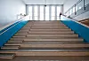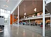 Alle fellesarealer har fått oppgraderte overflater på veggene med fargede finerplater. For å skape oversikt og synliggjøre de ulike aktiviteter bygget inneholder, er det valgt en løsning med utstrakt bruk av store glassfelter i de innvendige veggene.