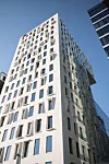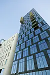 Nybygget er på 31.700 kvm over bakkeplan, i tillegg kommer 6.000 kvm fordelt på to kjellerplan med parkering, lager, økonomitorg og tekniske funksjoner. Det er ikke bare KLP-konsernet som samler seg i nytt hovedsete. 53 leiligheter i de ti øverste etasjene i det sørøstre tårnet står også klare til å ta i mot de første fastboende i Bjørvika på mange, mange år. De vil kunne nyte i langdrag Oslo sentrums til nå desidert beste usikt, enten utover fjorden eller over byen. Det er en underdrivelse å si at kvalitet på materialer og utførelse er over vanlig standard, og dette underbygger nok kjøpegruppens imøtesette forventninger og forutsetninger. Leilighetene varierer fra 34 til 118 kvm, de fleste med egen balkong. Boligene ble lagt ut for salg så sent som høsten i fjor, men skal være det pågående boligprosjektet i Oslo som har solgt best på kortest tid.