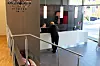 – Det er valgt glass i hele spisesalens bredde, i nedre fasade og i taket samt i hele fronten inklusive vindfang med skyvedører. Glasstaket i seg selv er en spenstig konstruksjon som ligger på kun 20 graders vinkel, som er et absolutt minimum for glass i forhold til snølaster. Siden spennet på det lengste er over 6 meter er det innlagt stålforsterkning inne i aluminiumsprofilene for å klare bæringen. Dette gir en slank, men spektakulær effekt i glassgården og mest mulig lysinnslipp.