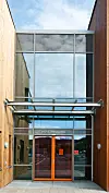 Skolebygget er vinkelformet (110 grader) og har to utbygde glasskarnapp. Bærende konstruksjon er prefabrikkerte søyler og hulldekker, samt noen sandwichelementer i fasaden. Taket er flatt, isolert og tekket med papp. Fasadene er dels kledd med beiset trekledning og dels med kebony. Bygget har også innslag av glassfasader og frilagt betong.