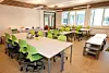 Fellesområder som peker seg ut er i første rekke auditoriet med 109 sitteplasser, der en oppgradert kvalitetsheving har gitt Gustafs Panel på vegger og eikeparkett på gulvet. Idrettshallen på 400 kvm kan deles i to. Det startet som en gymsal, men tilfredsstiller nå størrelsen når det gjelder tippemiddeltilskudd. Her er det lagt til rette for utleie til idretten på kveldstid.