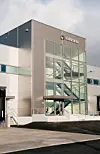 Bygget har generelle strukturer med lange spenn og få søyler, slik det må være for å oppnå store volumer. Midt på bygget signaliseres et større volum over tre etasjer, her er hovedatkomst med trappehus. Andre etasje inneholder en mesanin. Den ene delen, på 665 kvm, har kontorer og kantine med utgang til terrasse, mens en tilsvarende halvdel ennå ikke er innredet. Tredje etasje i hovedatkomsten inneholder teknisk rom.