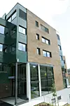 Et av premissene i godkjenningen var at dette prosjektet måtte forholde seg til grønnfargen og teglen i de to eksisterende byggene. Arkitekt Frei kunne nok ha ønsket seg enda mer glass i fasadene.