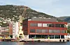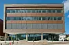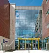 lære bygg med et mellombygg i glass. Bygget nærmest sjøen er for under-
