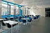 I undervisningsbygget er det mange faste vegger, mens det i kontorbygget er systemvegger. Det er systemhimlinger i begge byggene. I undervisningsbygget ligger det et auditorium med plass til over 700 personer. Auditoriet kan om ønskelig deles på tvers. Hele skolekomplekset har universell utforming.
