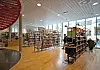 På samme plan som kafeteria og avis/tidsskriftavdeling er det blitt plass til et auditorium med cirka 100 plasser. Biblioteket danner nå vestveggen i en ny spennende plass som er under etablering av Grønn Etat i Bergen kommune. Som arkitekter har vi vært engasjert i ombygging og påbygging av dette huset i flere byggetrinn over 22 år og vi gleder oss nå over at målet er nådd.