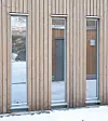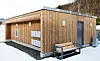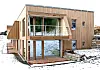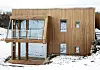 – Taket har et fall på cirka fire grader og innvendig nedløp. Veggene er bygget opp med gipsplater, fem cm Glava, diffusjonssperre, isolert 98 mm bindingsverk, ti cm Glava i mellomrom, isolert 98 mm bindingsverk, asfaltplater, lekter og kledning. Fasadene er kledd med Kebony, noe som gjør dem tilnærmet vedlikeholdsfrie. Det er linoleum på gulvene, med unntak av baderom og andre våtrom, som er flislagte. Veggene har frilagte massivtreelementer. Det er massivtre-elementer i himlingene.