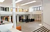 Nybygget har platefasader med Sto Systempuss og store partier med glass og aluminium. Innvendig er det valgt keramiske fliser og industriparkett på gulvene, mens veggene har pussede flater med mur, betong og gips. Innvendige glasspartier bidrar til å åpne opp inn til ulike funksjoner i bygget.