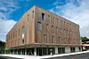 LPO arkitekter ville at trekledningen i fasadene skulle lede tankene hen på det parkliknende området som måtte vike. Det stående, sibirske lerkepanelet er jernvitrolbehandlet. De fleste vindusflatene er smale og vertikale.