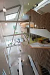 – Det avhenger av hva som er på innsiden. Østfasaden med cellekontorer trenger ikke så mye lys, det passer også godt til den vertikale kledningen. I forhold til totalt gulvareal er det forholdsvis lite glassflater i bygget. Men vi var veldig nøye på hvor vi skulle ta lyset inn, forklarer Marcussen.