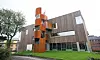 De 3.500 kvm er fordelt på fire etasjer over bakkenivå. Bygget har en tilnærmet kvadratisk form, men med tydelige brudd, vinkler og fall i fasadene. Også i det sørvestre hjørnet har taket en øvre avskalling. Glasstaket her gir overlys ned i hele den store foajeen, som er et flerbruksrom og inneholder funksjoner for mange brukere. Både vertikal og horisontal kommunikasjon i de åpne trapperommene henvender seg mot foajeen. Inngangen til auditoriet med 250 sitteplasser er i kjelleretasjen vis-à-vis kulvertinngangen. Hele volumet preges av de stående eikespilene på enkelte veggflater, og av slipt betong på gulv i kulvert, i foajé, og i trapper.