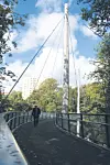 Rekkverket består av stålstendere og en stål topplist med en toppbjelke og en stål håndlist i bruksvennlig høyde. Rekkverkpanelene er i plexiglass med LED-belysning i tillegg til effektbelysning i tårnene.