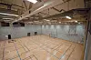 På tvers av bygget og plassert i to etasjer under bakkenivå ligger – foruten ventilasjonsrom, garderobeanlegg og et treningsstudio – en stor flerbrukshall. I en tidlig fase av prosjektet ble det operert med to mindre typer gymsaler, plassert i bakkant av fjellskrenten mot vest. Men med det store elevtallet var det et vilkår å kunne gjennomføre gym for tre klasser parallelt. Med den nye hallen på 23 x 44 meter, som igjen kan deles i tre, er denne forutsetningen innfridd.