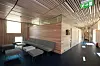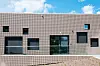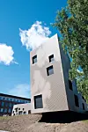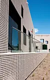 Fasadeplatene er en ytterhud. Med tanke på kjøleaggregatene på taket ville arkitektene ha et materiale som kunne være åpent og lukket samtidig, uavhengig av hvor man betrakter bygget fra. Aluminiumsplatene er resirkulerte og perforeringen i dem skal gi assosiasjoner til skyformasjoner.