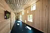 Andre etasje har en utstrakt bruk av trematerialer. Ask og osp går igjen i vegger og i himlinger.