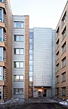 – Det ville ikke vært regningsvarende å føre opp et lavere bygg med færre hybler. Det var viktig å skape et bygg som er en del av en helhet på tomten. Derfor har bygget fått de samme karakteristiske gavlene som nabobygget. Bygget er plassert slik at det er med på å ramme inn atkomsten til idrettsanlegget i studentbyen.